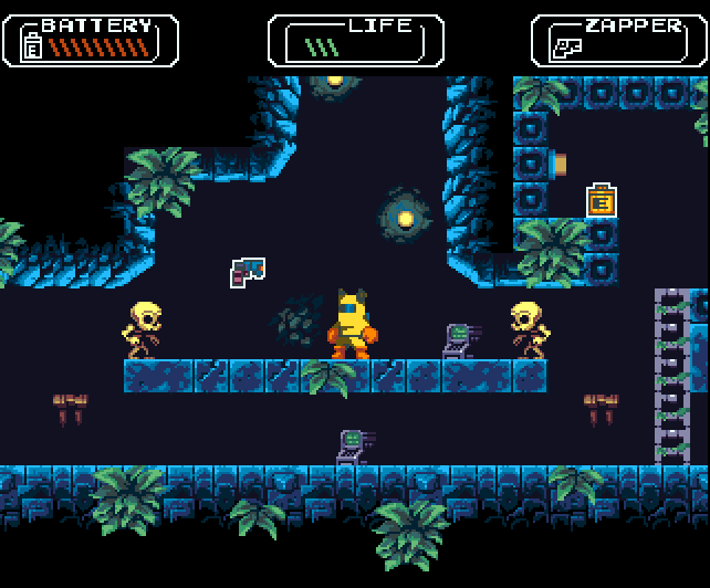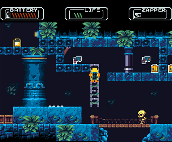 With each battery found and each computer repaired, Dr. Dangerous gets closer to his goal. However, working with the temple's energy presents new challenges and dangers. Each time he reaches a new level of the temple, his weapon is reset by the security protocols, forcing him to continuously develop new strategies to defend himself against the creatures.