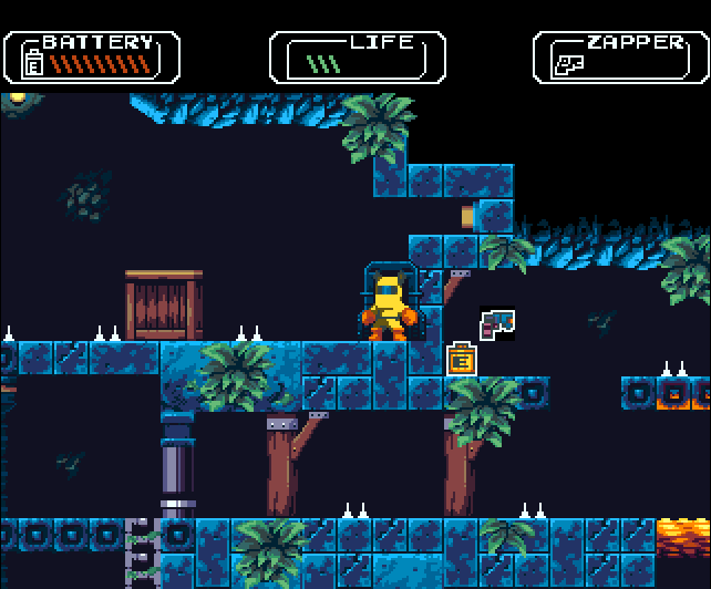 Rick dangerous-Metroid vibes certainly here. 1001 spikes and more. Flashback vibes are there too. Music in intro has that Beast vibe.